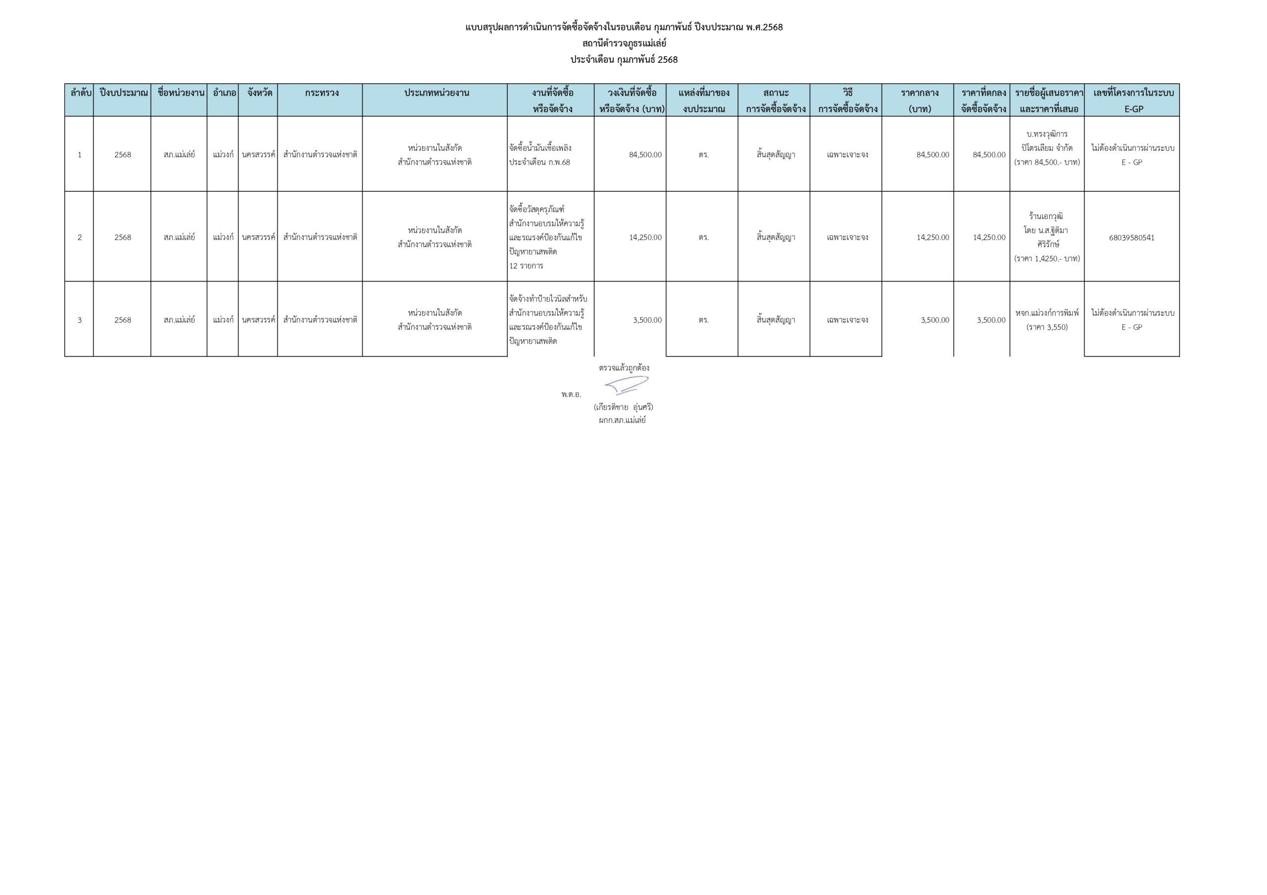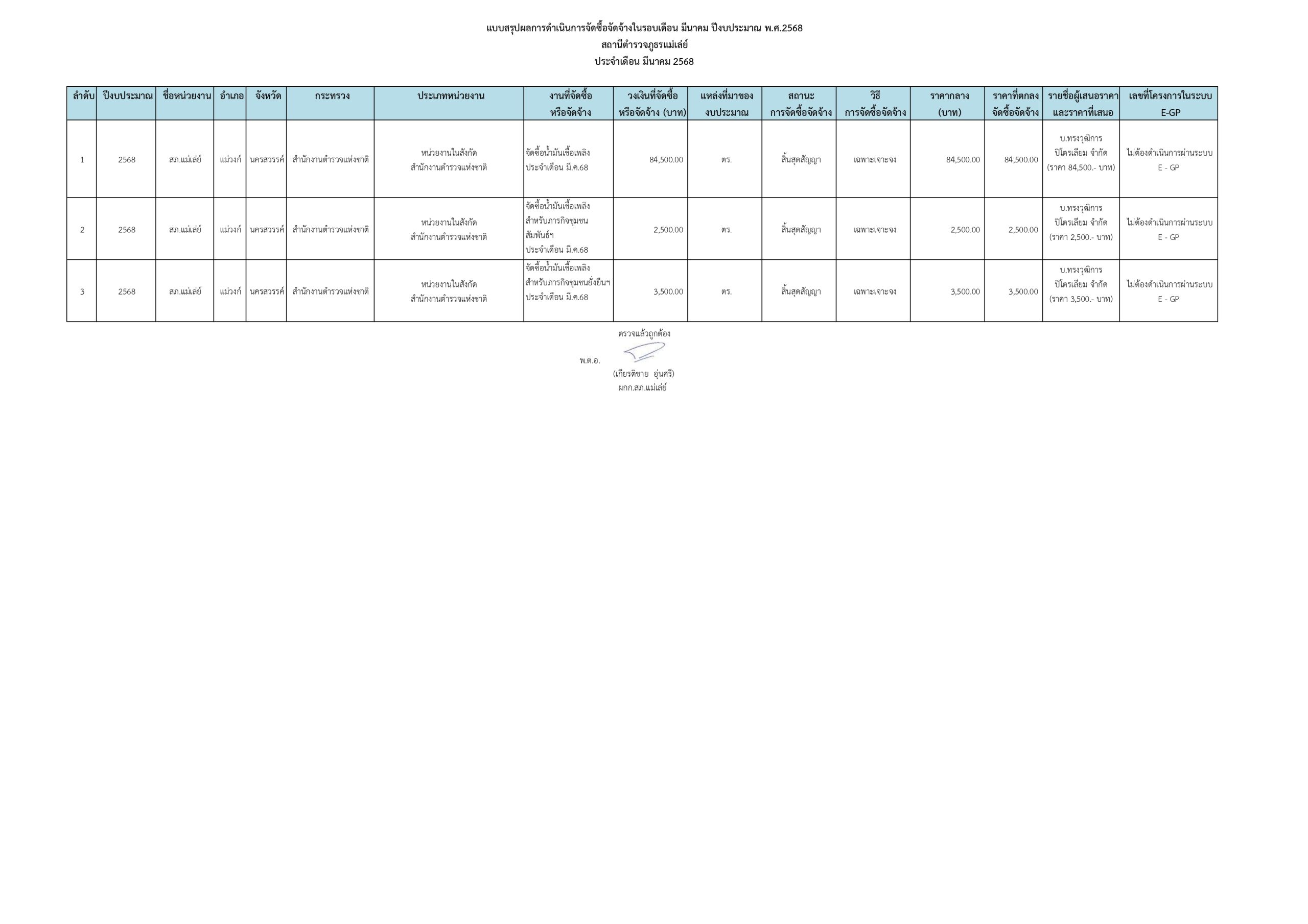 ผลการปฏิบัติงานคณะกรรมการตรวจสอบและติดตามบริหารงานตำรวจ (กก.ตร.) มี.ค.68