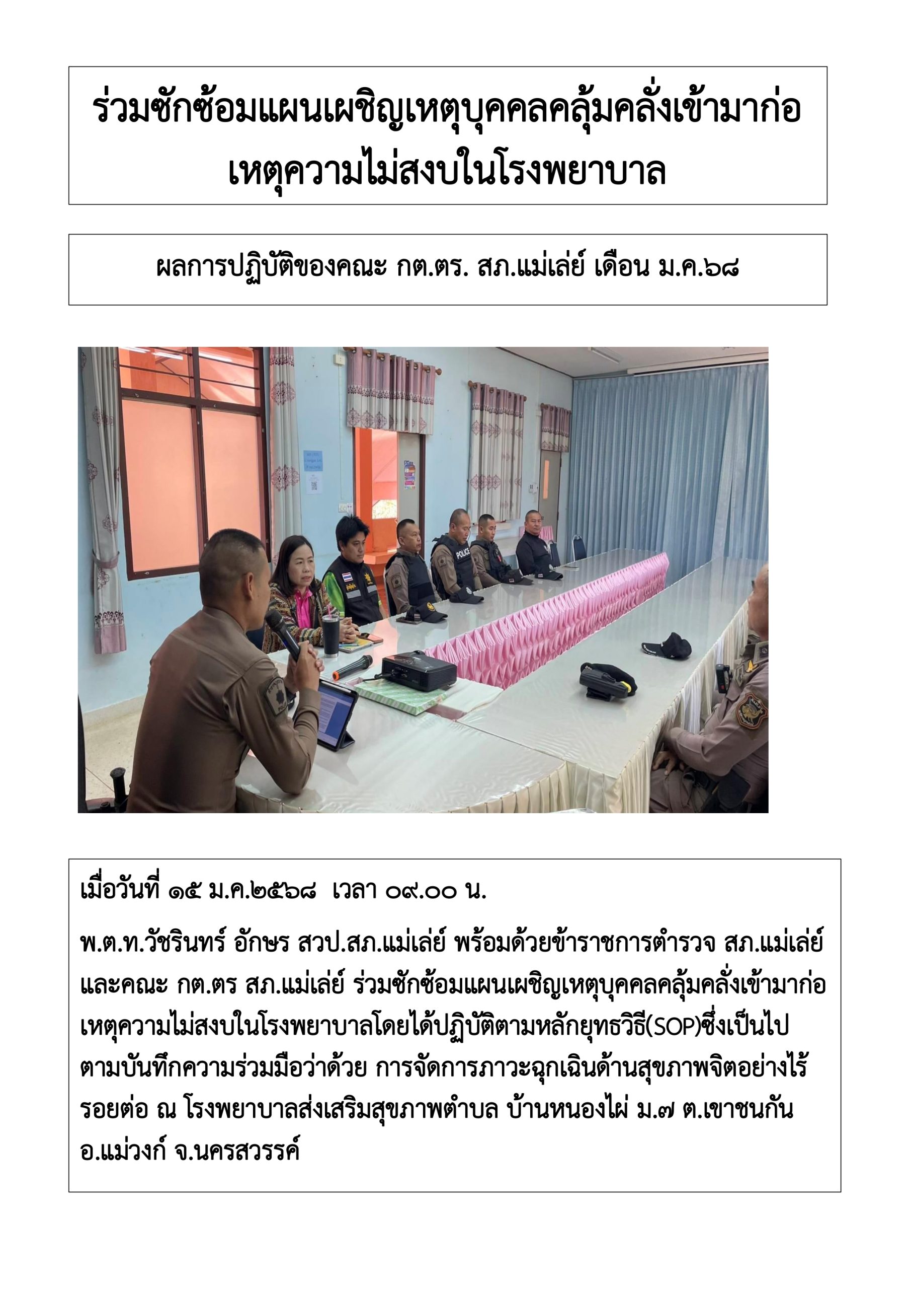 ซักซ้อมแผนเผชิญเหตุบุคคลคลุ้มคลั่งเข้ามาก่อเหตุความไม่สงบในโรงพยาบาลโดยได้ปฏิบัติตามหลักยุทธวิธี(SOP…